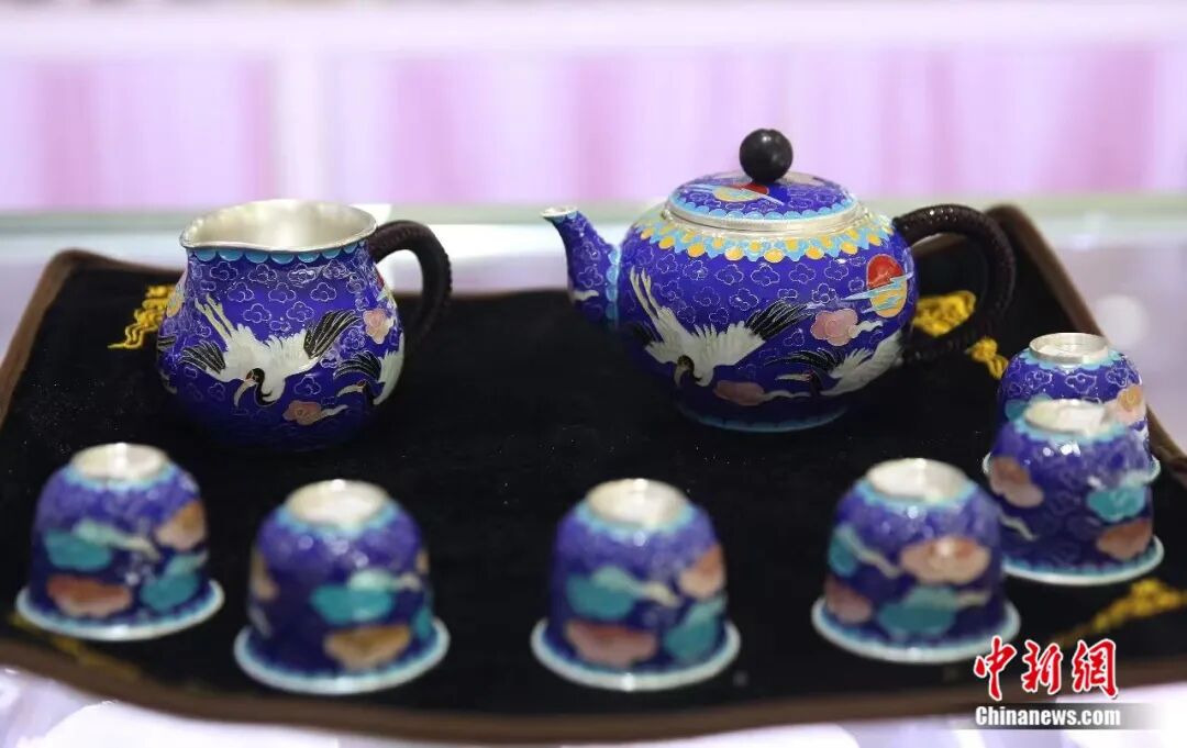A cloisonné silver tea set. (Photo courtesy of the Publicity Department of the Communist Party of China Yongxing County Committee)
