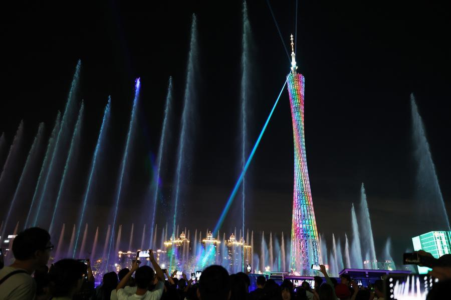 This photo taken on Nov. 9, 2025 shows the illuminated Canton Tower in Guangzhou, south China's Guangdong Province. (Xinhua/Cheng Tingting)