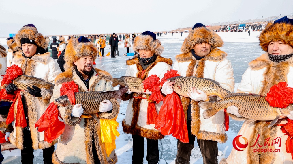 During a recent winter fishing festival at Ulungur Lake in Fuhai county, Altay, northwest China's Xinjiang Uygur Autonomous Region, fish leapt from the frozen lake surface, delighting tourists.