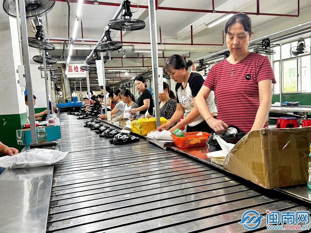 Workers produce slippers in a company in Jinjiang, southeast China's Fujian Province. (Photo/mnw.cn)