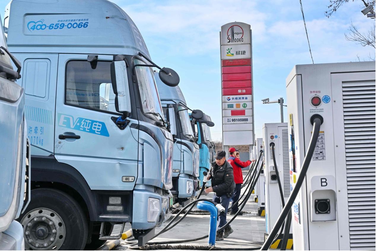 A heavy-duty truck is charged at a charging station in Miyun district, Beijing. (Photo/Hu Qingming)