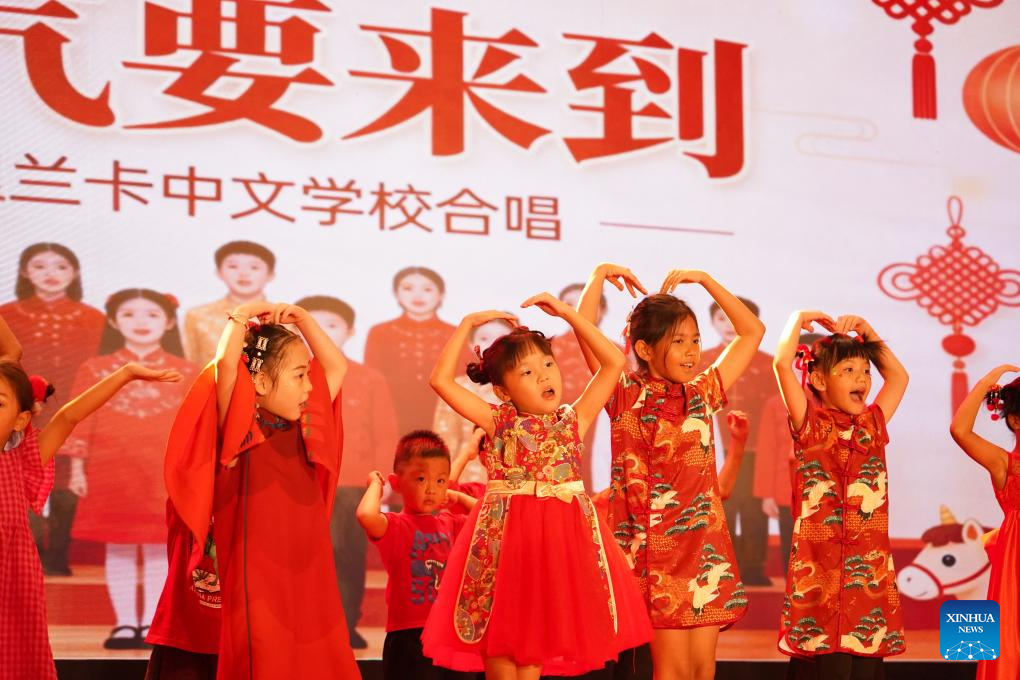 Children perform at a Chinese New Year reception in Colombo, Sri Lanka, Feb. 9, 2026. (Xinhua/Wu Ziyu)