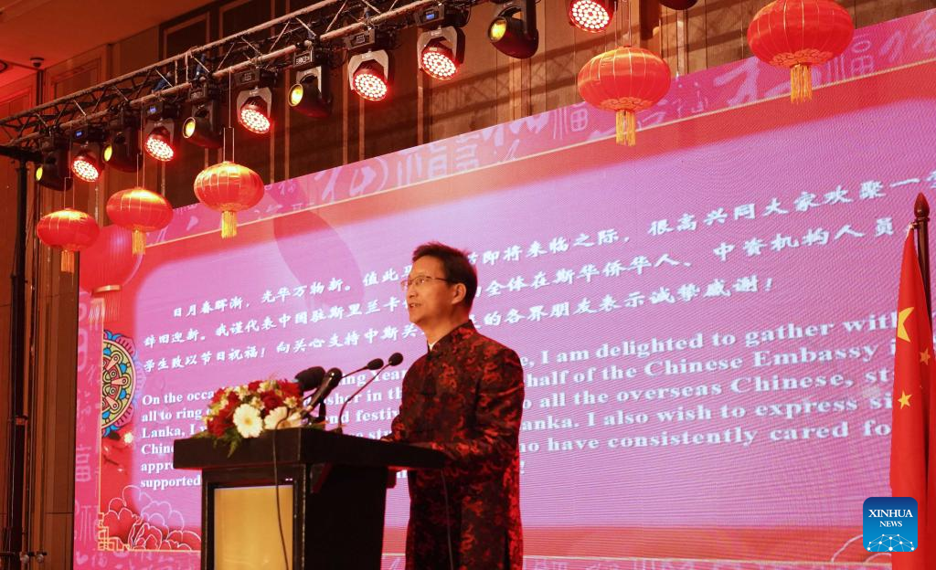 COLOMBO, Feb. 10 (Xinhua) -- Members of the Chinese community in Sri Lanka, together with local Sri Lankan guests, gathered here on Monday evening to feel the vibe of Chinese New Year at a reception hosted by the Chinese Embassy in Sri Lanka.