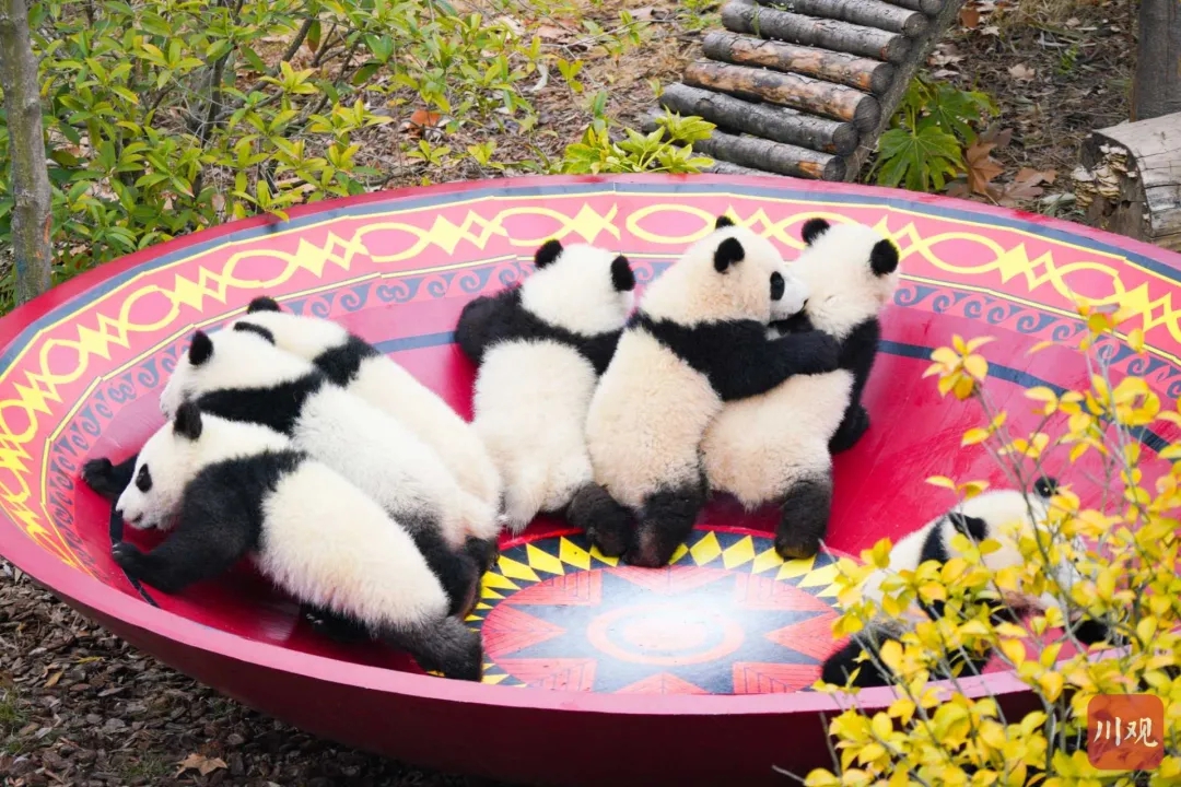 The cubs, all born between May and July 2025, were presented to the public at the Chengdu Research Base of Giant Panda Breeding in Chengdu.