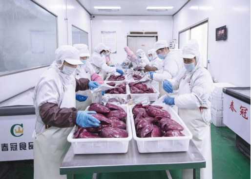 At the production workshop of a fruit and vegetable processing company in Laiwu city in Shandong, fully automated lines are running at full capacity, processing pickled sushi ginger for export to Germany, Sweden and other countries. Orders are booked solid through March.