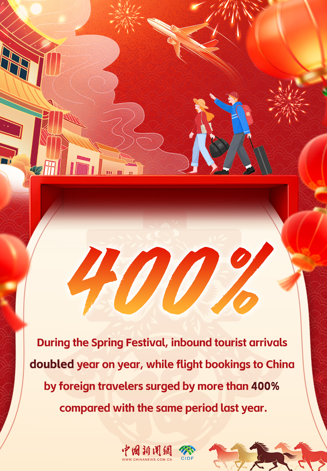During the holiday, foreign tourists to China have doubled and inbound flight bookings have more than quintupled year-on-year. According to the National Immigration Administration, international visitors made 1.313 million cross-border trips during the holiday, with the daily average increasing by 21.8 percent year on year. Among them, 460,000 travelers entered under visa-free policies, up 28.5 percent from last year's daily average.
