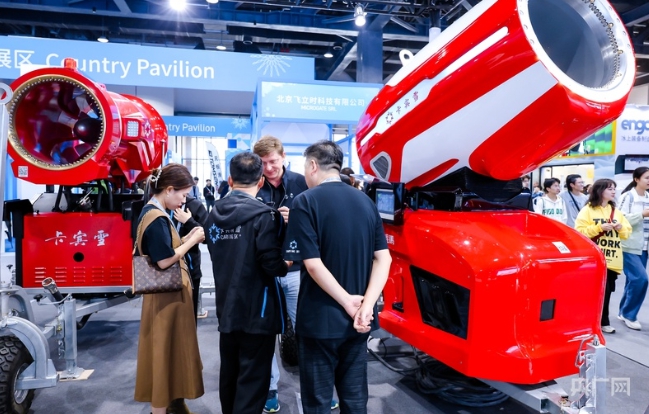 Snowmaking machines developed by Zhangjiakou Carving Ski Equipment Manufacturing Co., Ltd. are showcased at the World Winter Sports (Beijing) Expo 2024. (cnr.cn/courtesy of the interviewee)