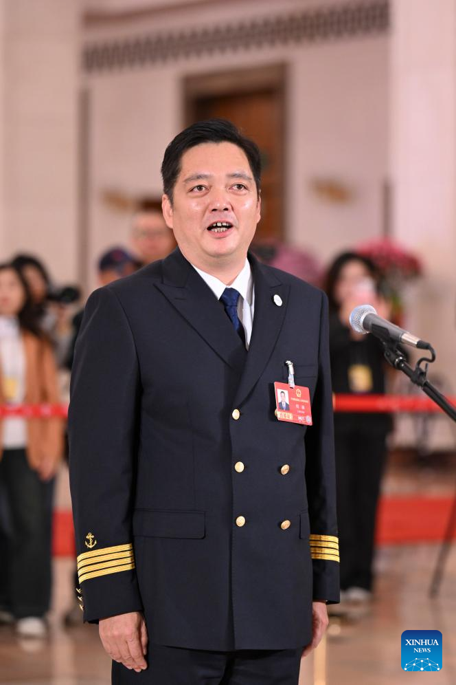 Huang Huachun, a deputy to the 14th National People's Congress (NPC), attends a group interview ahead of the second plenary meeting of the fourth session of the 14th NPC at the Great Hall of the People in Beijing, capital of China, March 9, 2026. (Xinhua/Cheng Tingting)