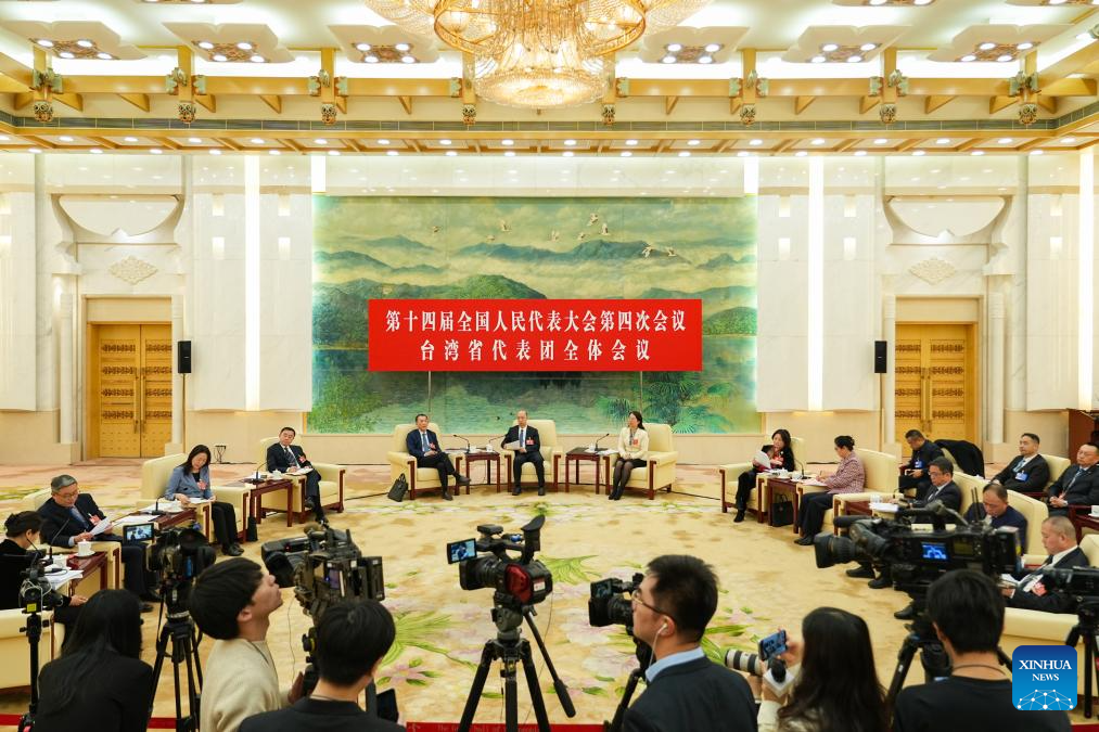 A group meeting of deputies from the Taiwan delegation is held at the fourth session of the 14th National People's Congress (NPC) in Beijing, capital of China, March 8, 2026. (Xinhua/Li Minggang)