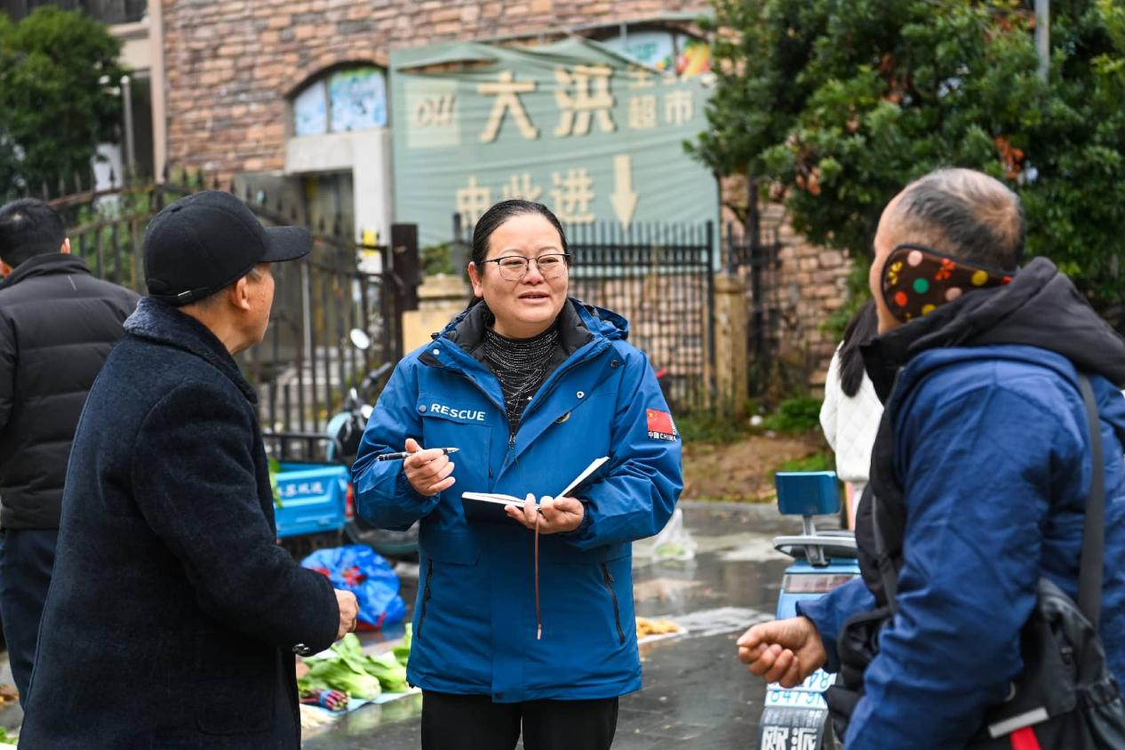A member of the Yichun municipal committee of the Chinese People's Political Consultative Conference (middle) conducts field research on community management in a neighborhood in Yichun, east China's Jiangxi province, Jan. 27, 2026. (Photo/Zhou Liang)