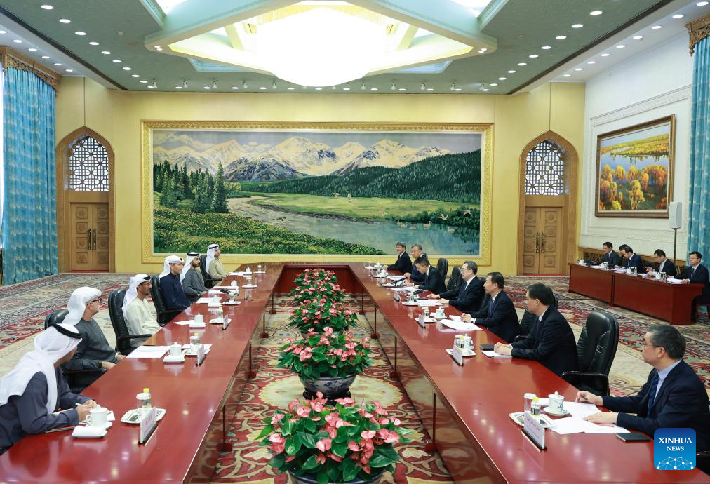 Ding, also a member of the Standing Committee of the Political Bureau of the Communist Party of China Central Committee, said that under the strategic guidance of the two heads of state, political mutual trust between China and the UAE has been continuously consolidated, and practical cooperation in various fields has yielded fruitful results.