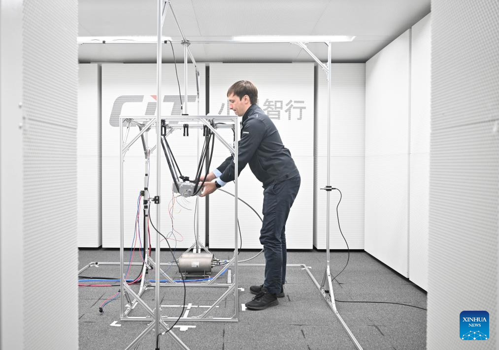 A staff member conducts virtual chassis tuning at an industrial innovation center in Liyang, east China's Jiangsu Province, June 11, 2025. (Xinhua/Li Bo)