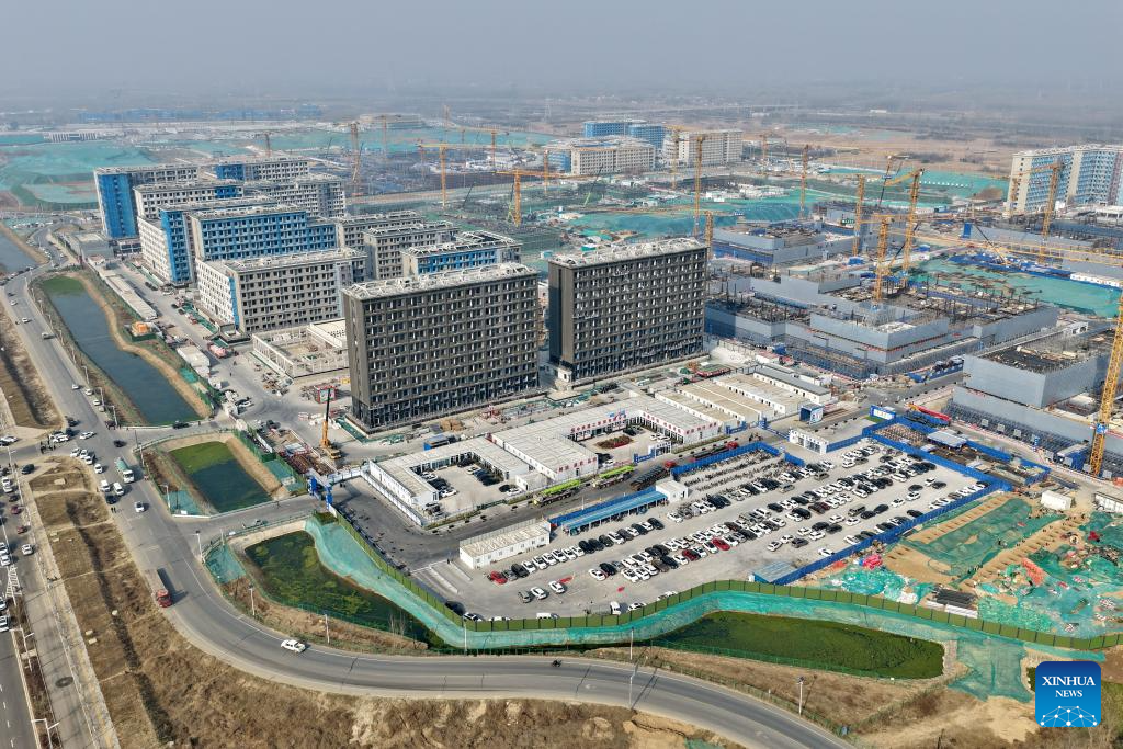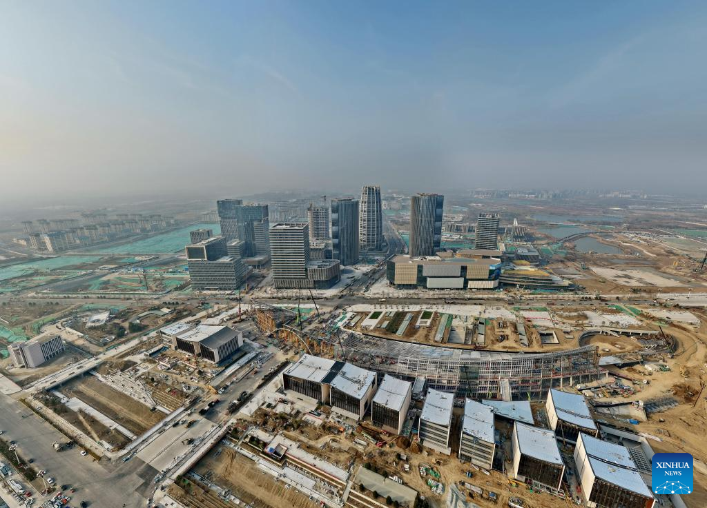 An aerial drone photo taken on March 25, 2026 shows a scene at the construction site of the start-up zone of Xiong'an New Area, north China's Hebei Province.