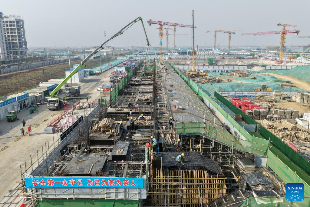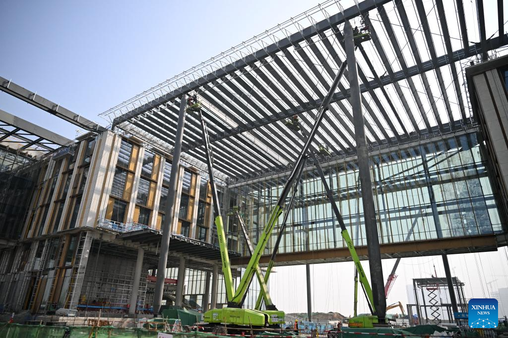 This photo taken on March 25, 2026 shows a scene at the construction site of the headquarters of China Mineral Resources Group Ltd. in Xiong'an New Area, north China's Hebei Province.