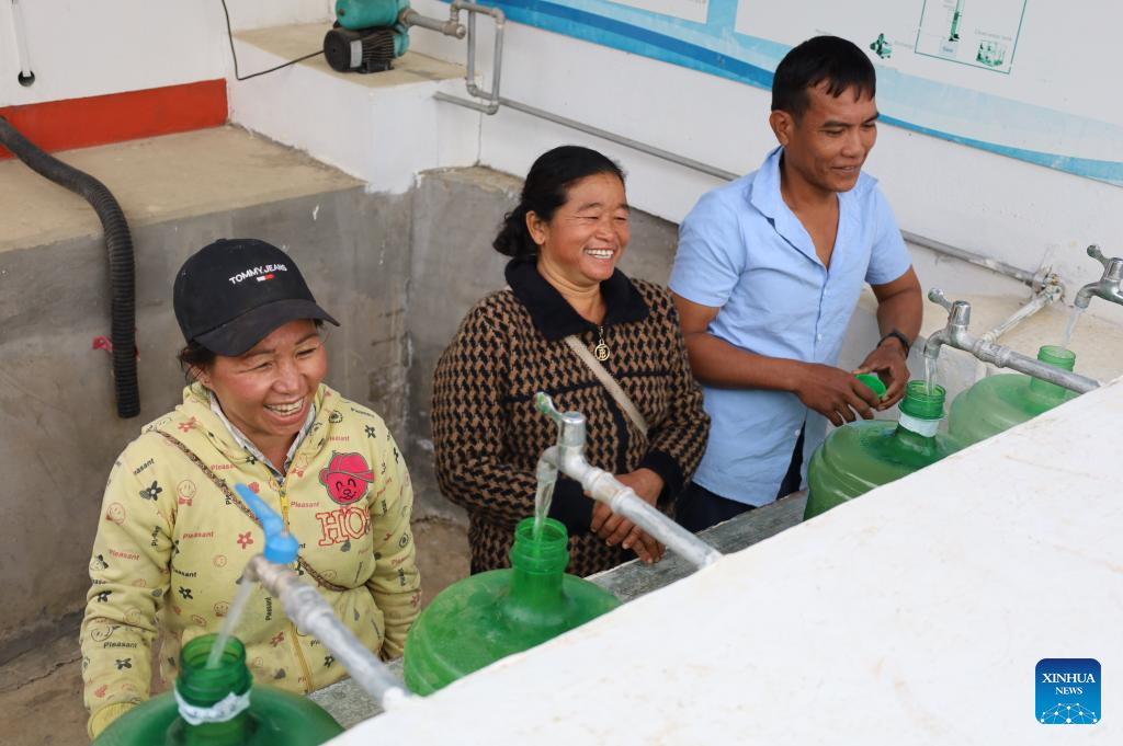 VIENTIANE, April 1 (Xinhua) -- At 7 a.m., before the morning mist had lifted, villagers of Hatkeep village in northern Laos' Luang Prabang province carried buckets to the local water supply station. As they turned on the taps, clear water gushed out. The buckets were glittering with light, reflecting the villagers' contented smiles.