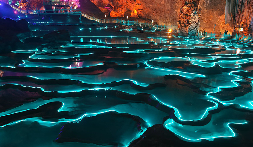 An intelligent lighting system has also been introduced, casting precisely tailored light on the cave's formations based on their textures and shapes, turning static geological features into an immersive, dynamic display of light and shadow.