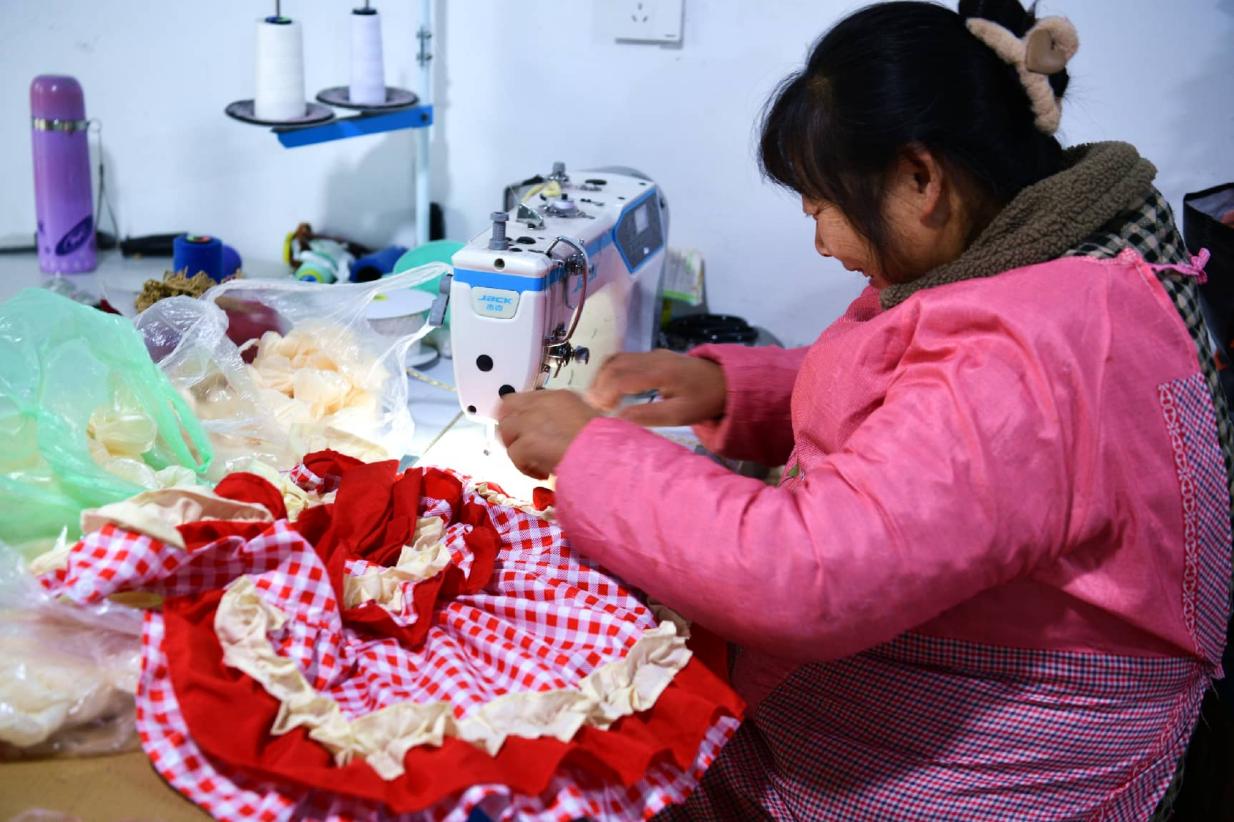 An employee of an e-commerce company makes pet clothes in Huai'an, east China's Jiangsu province. (Photo/Liu Bin)