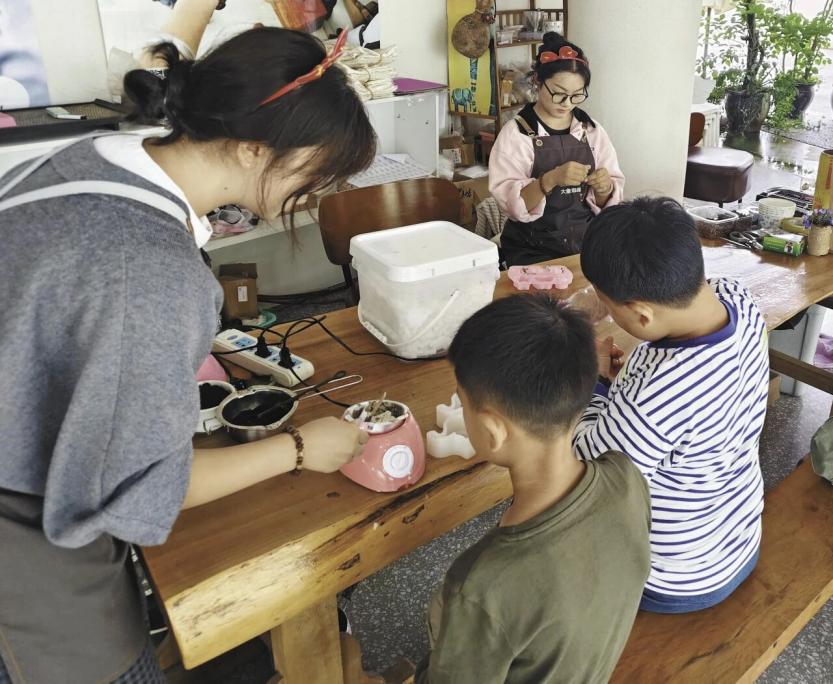 Tourists make cultural and creative products at Pu'er Elephant Boutique Coffee Estate.