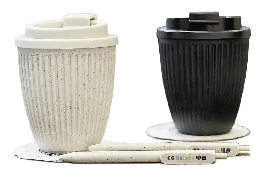 Photo shows cups made from coffee grounds by the "Feitong Xiaoke" research team from Tianjin University of Commerce.