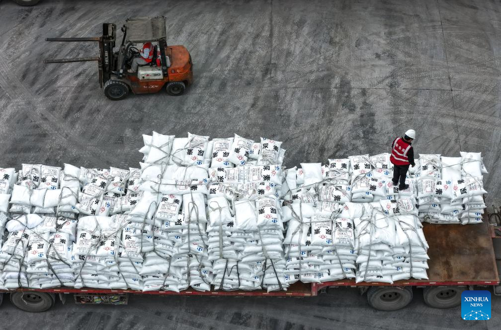 To ensure the timely supply of fertilizer for spring agricultural production, the operator of Weng'an-Machangping Railway has ramped up dispatching and organization work. This year, the line has transported more than 1,664 freight cars of fertilizer, totaling over 100,000 tonnes. (Xinhua/Yang Wenbin)