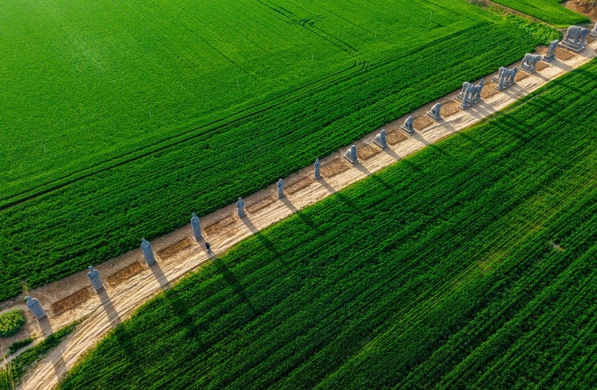 Home to seven emperors of the Northern Song Dynasty (960-1127), the imperial mausoleums in Gongyi city, central China's Henan Province, are China's best-preserved imperial mausoleums of that era. Majestic stone figures of mythical creatures, animals, and officials stand in silent rows, having watched over the land for centuries. These stone sculptures provide precious clues for the study of Song Dynasty sculpture art. Set against fields and distant hills, they reflect a timeless hope for peace and harmony.