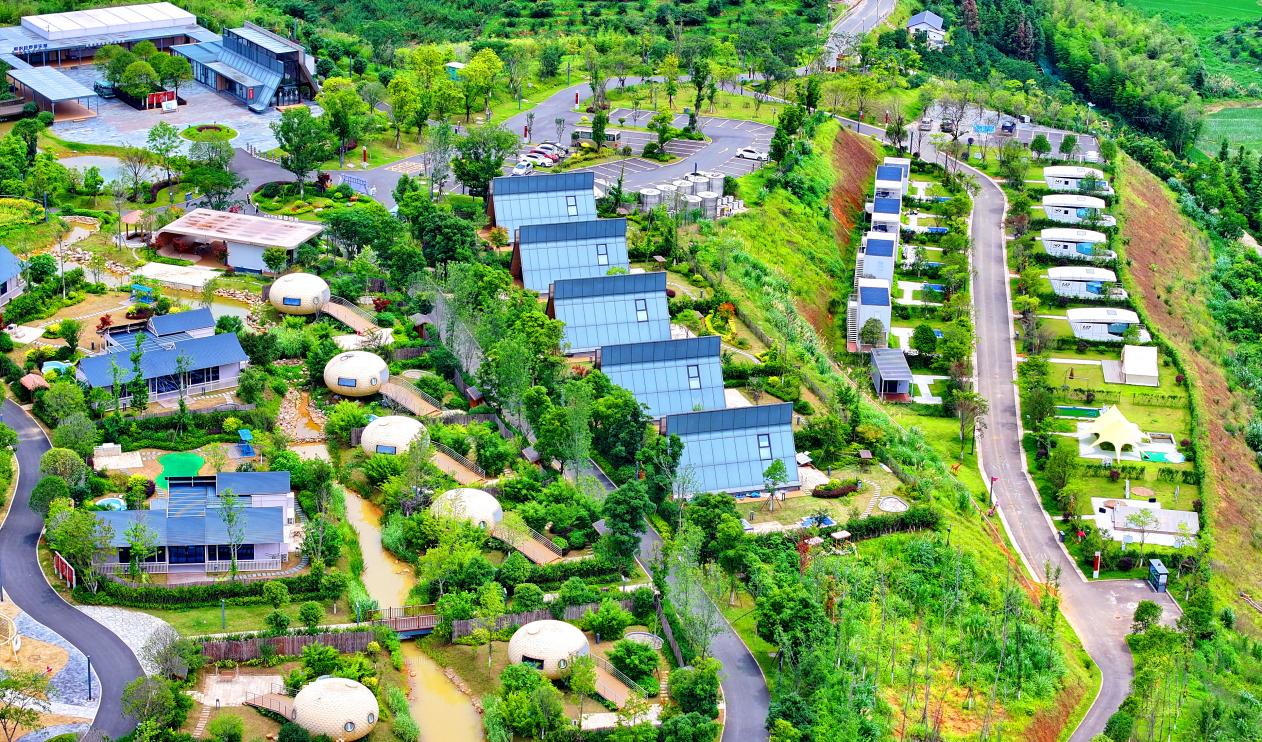 In Yuhuang community in Fucheng district, Mianyang, southwest China's Sichuan province, rows of newly built houses with white walls and gray tiles are scattered in an orderly manner. Unlike traditional rural houses, these two-story detached homes adopt a prefabricated light steel structure.