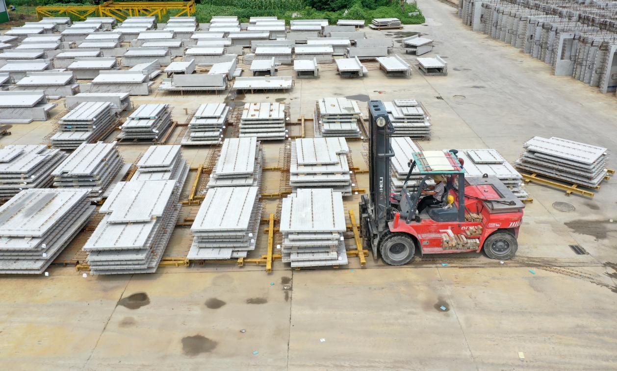 Photo shows prefabricated building components in a yard of a factory in Bozhou, east China's Anhui province. (Photo/Hu Weiguo)