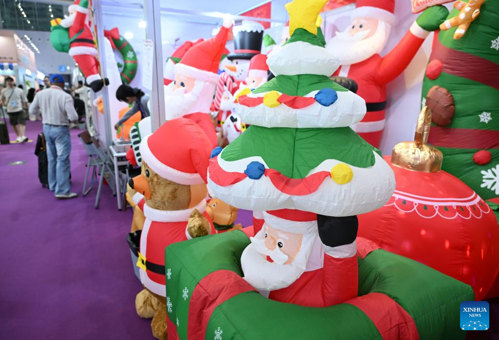 Christmas decoration exhibits are seen during the 139th edition of the China Import and Export Fair (Canton Fair) in Guangzhou, south China's Guangdong Province, April 23, 2026. The second phase of the 139th edition of the Canton Fair kicked off here on Thursday.