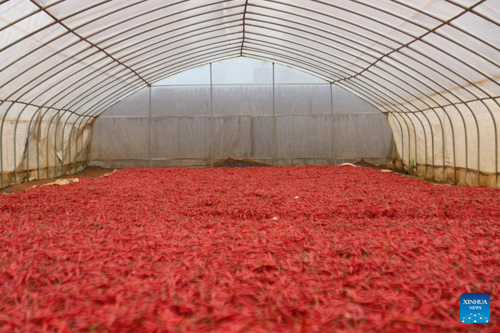 This photo taken on April 14, 2026 shows chili peppers at the agricultural factory Fisher Global in the Rwamagana Industrial Park, Eastern Province, Rwanda. (Xinhua/Ju Yinhe)