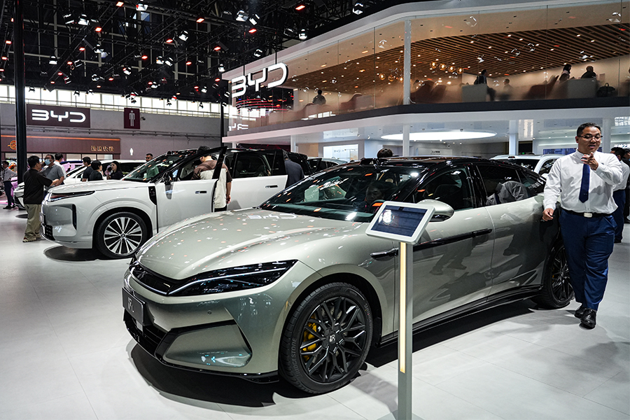 Photo taken on April 25, 2026, shows the exhibition area of BYD at the 2026 Beijing International Automotive Exhibition (Auto China 2026), which is being held from April 24 to May 3 in Beijing. (People's Daily Online/Peng Yukai)