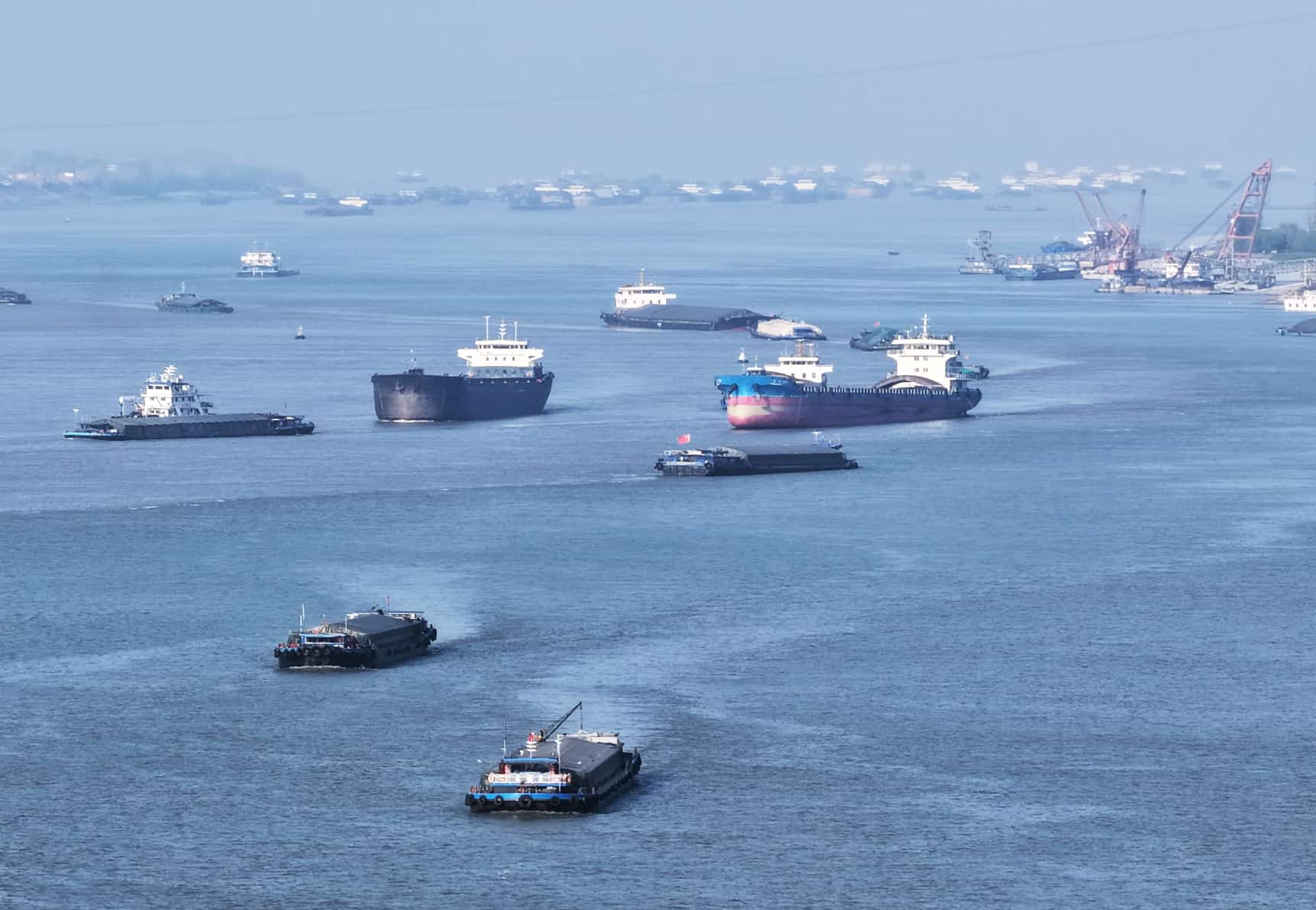 Vessels sail in a waterway in the Yangtze River in Hukou county, Jiujiang, east China's Jiangxi province. (Photo/Zheng Feihua)
