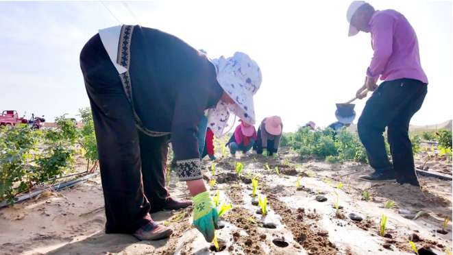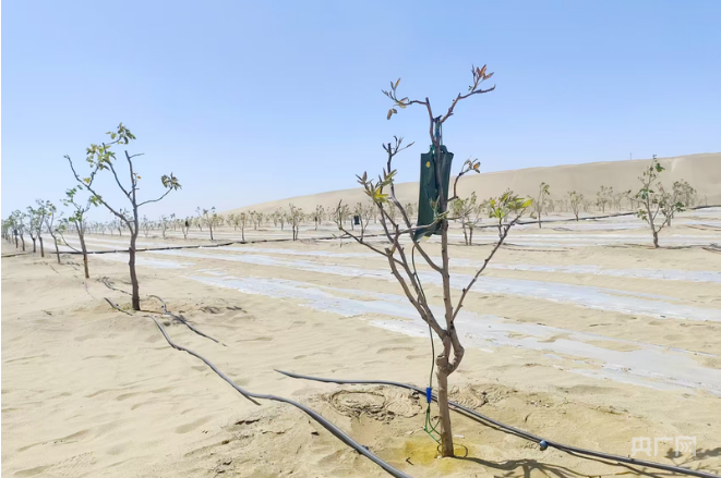 "With our continued efforts, we believe that this desert will gradually turn into an oasis, and the local people's lives will become increasingly prosperous," said kurban Mettursun, who is teaching planting techniques to six apprentices.
