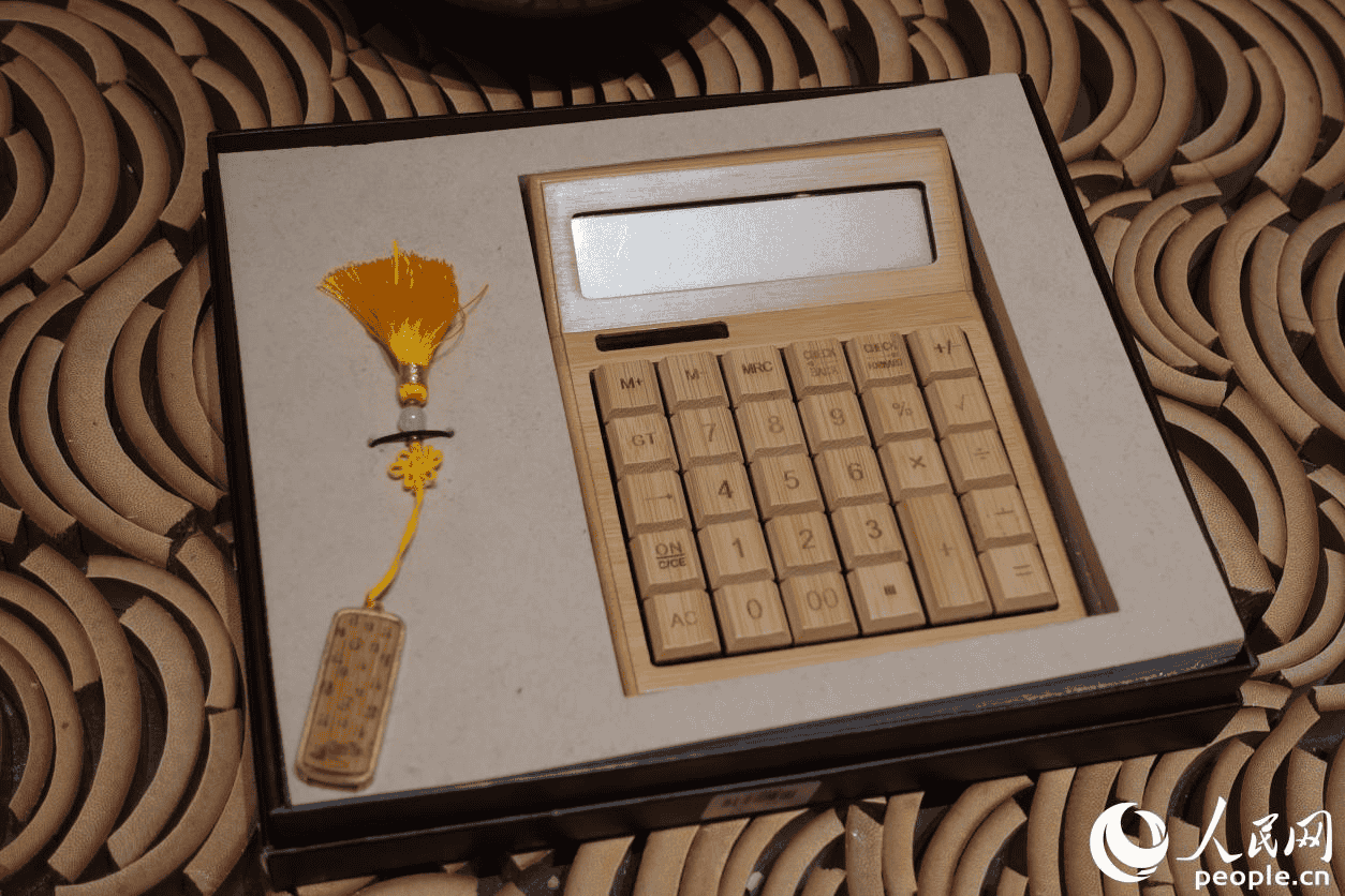 Photo shows a bamboo-made calculator on display in Shaowu, a county-level city in southeast China's Fujian Province. (People's Daily Online/Xie Xingyu)
