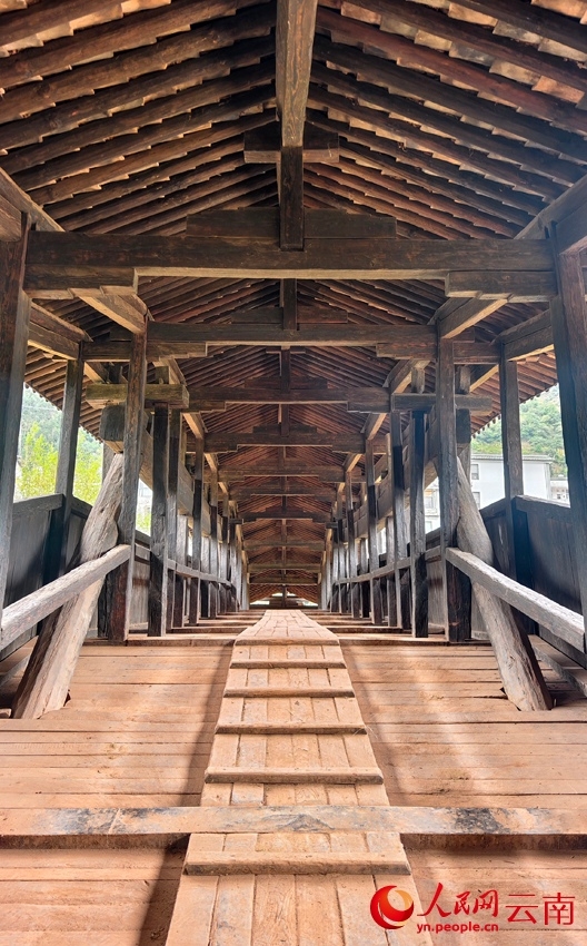 Photo shows a wooden beam bridge in Yunlong county, Dali Bai Autonomous Prefecture, southwest China's Yunnan Province. (People's Daily Online/Fu Hao)