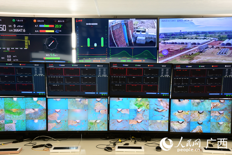 Photo shows the central control room of Dongxing Mangrove Agriculture Co., Ltd. in Dongxing, south China's Guangxi Zhuang Autonomous Region. (People's Daily Online/Pang Huiwen)