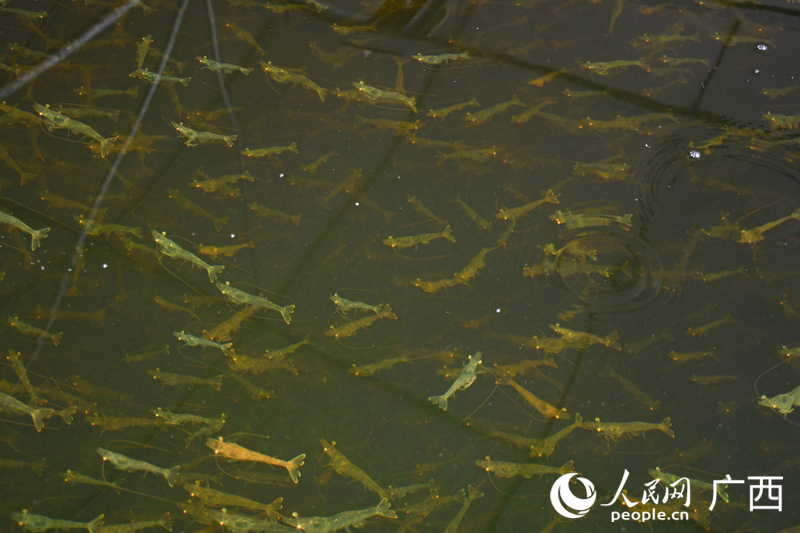 Photo shows whiteleg shrimp in the unmanned breeding facility of Dongxing Mangrove Agriculture Co., Ltd. in Dongxing, south China's Guangxi Zhuang Autonomous Region. (People's Daily Online/Pang Huiwen)