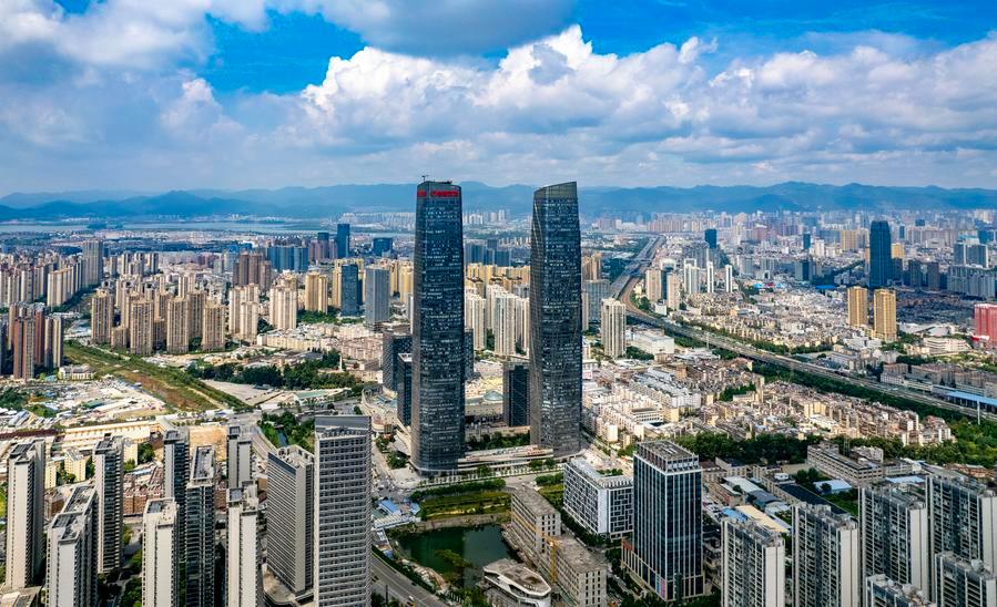 An aerial drone photo taken on Sept. 4, 2025 shows a city view in Kunming, southwest China's Yunnan Province. (Xinhua/Chen Xinbo)