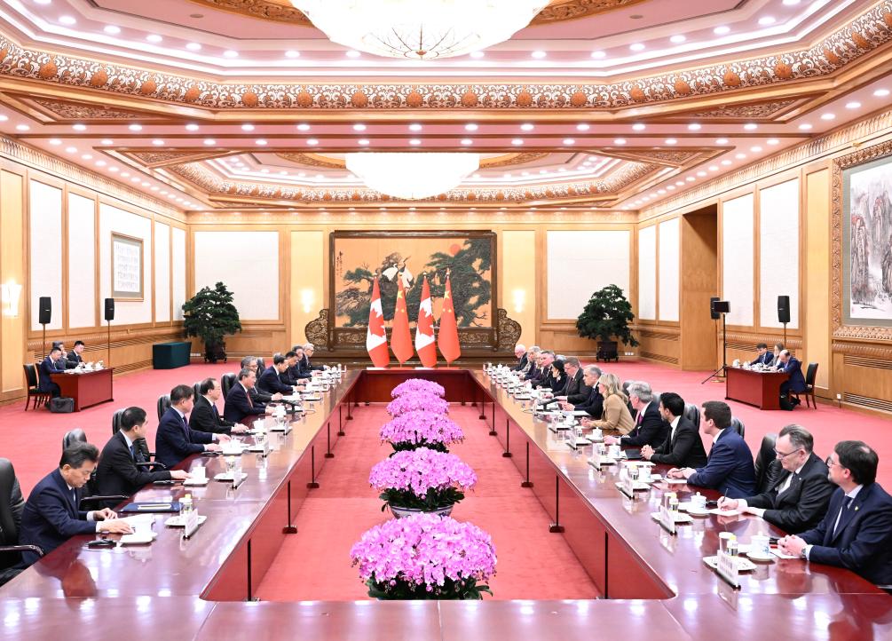 BEIJING, Jan. 15 (Xinhua) -- China is willing to strengthen cooperation with Canada in areas such as clean energy, digital technology, modern agriculture, aerospace, advanced manufacturing and finance, to foster more new drivers of economic growth, Chinese Premier Li Qiang said when holding talks with Canadian Prime Minister Mark Carney in Beijing on Thursday.