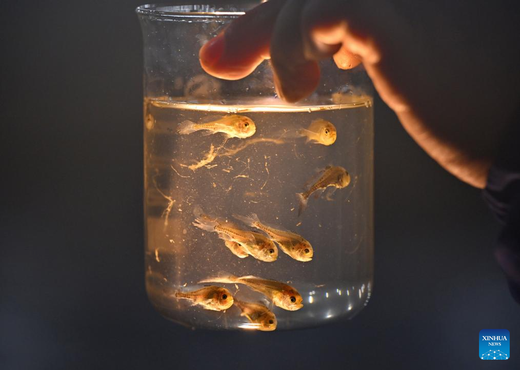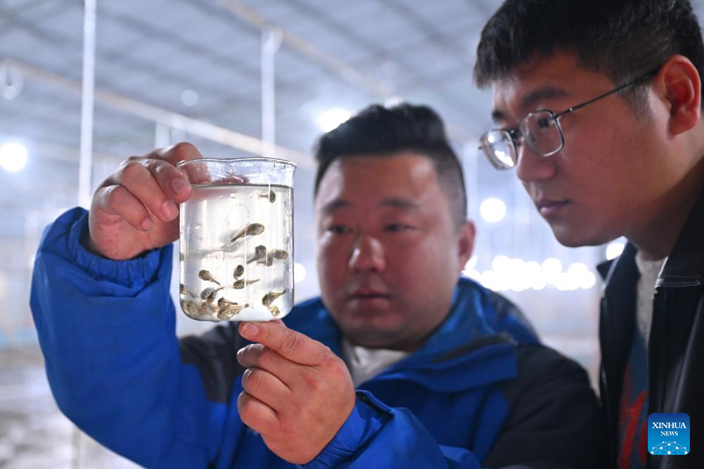 A technician checks the conditions of fry at a fry breeding company in Shacheng Town of Fuding, Ningde, southeast China's Fujian Province, Jan. 22, 2026. In recent years, Ningde has promoted the high-quality development of the mariculture industry by strengthening marine management and improving the technological application, thus injecting new impetus into rural revitalization. (Xinhua/Jiang Kehong)