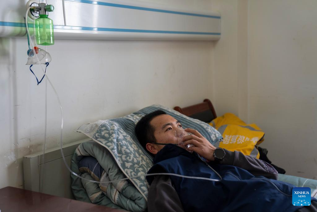 A worker takes oxygen at the dormitory after returning to the Za'gya Zangbo signal maintenance section in Amdo County, Nagqu, southwest China's Xizang Autonomous Region, Jan. 24, 2026. Perched at an altitude of 4,886 meters, the Za'gya Zangbo signal maintenance section in Amdo County is the world's highest railway signal maintenance section. Fierce winds and bitter cold prevail in the area, where temperatures often drop below minus 30 degrees Celsius.