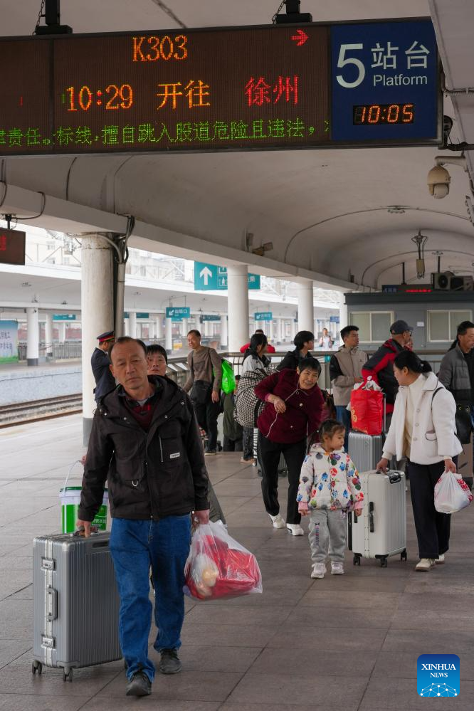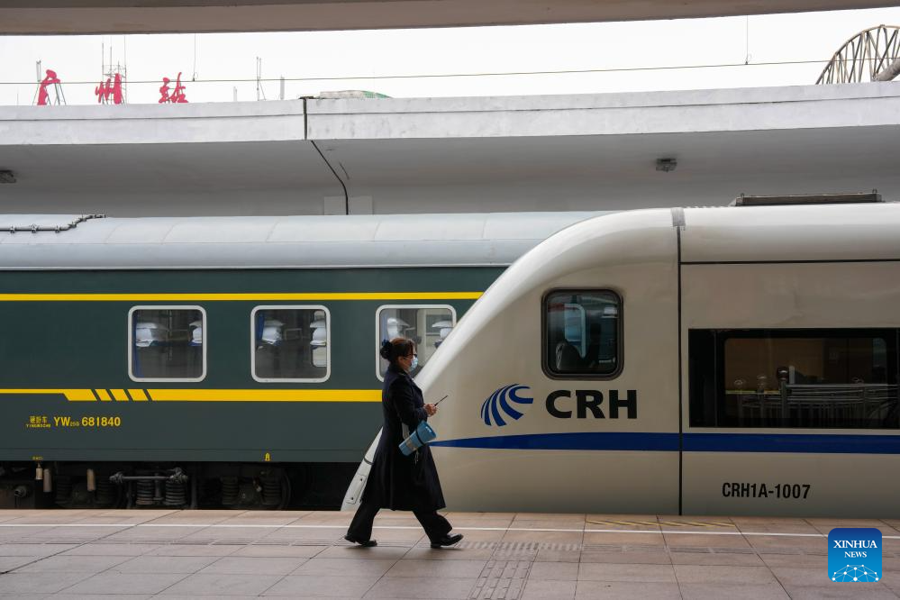 Passengers prepare to board train K303 at Guangzhou Railway Station in Guangzhou, south China's Guangdong Province, Jan. 25, 2026. Train K303, the last conventional train departed here on Sunday, concluding the terminal operation of this kind of trains at the century-old station. (Xinhua/Wu Lu)