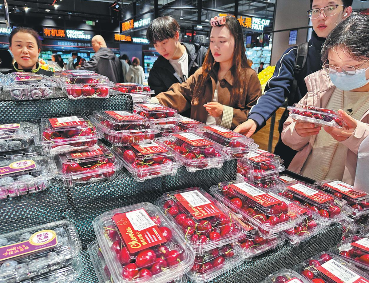 Consumers choose cherries at a supermarket in Chongqing on Nov 8. SUN KAIFANG/FOR CHINA DAILY