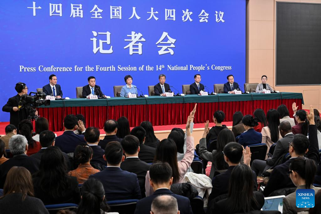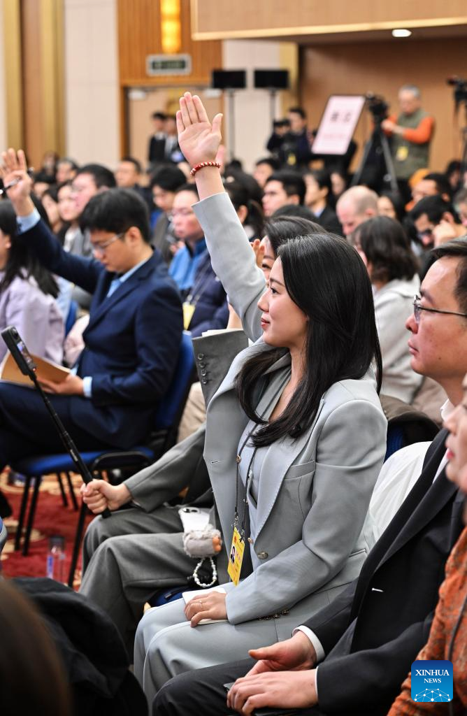 Journalists raise hands to ask questions at a press conference for the fourth session of the 14th National People's Congress (NPC) on people's livelihood in Beijing, capital of China, March 7, 2026. (Xinhua/Li Xin)