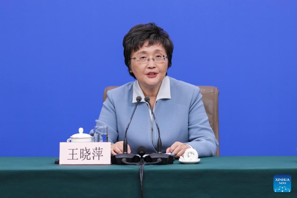 Wang Xiaoping, minister of human resources and social security, attends a press conference for the fourth session of the 14th National People's Congress (NPC) on people's livelihood in Beijing, capital of China, March 7, 2026. (Xinhua/Wang Xi)