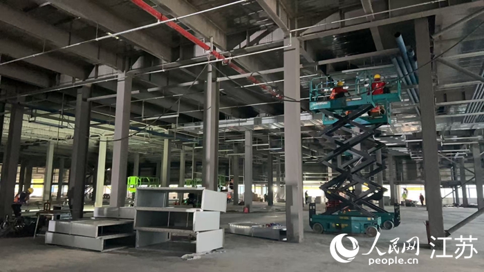 Workers install equipment for the deep processing of aquatic products at a factory in Gaochun district, Nanjing, east China's Jiangsu Province. (People's Daily Online/Wang Dandan)